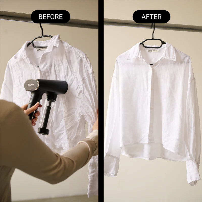 Smooth, dry, and ready in seconds. The portable steamer designed for everyday ease.